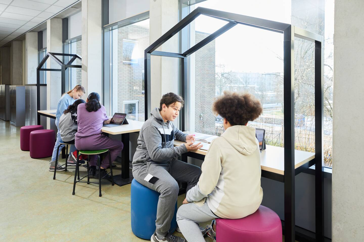 The school furniture in these halls matches perfectly with the objective that was set for the new interior design: optimal use of space to create more room for working, playing and learning together.