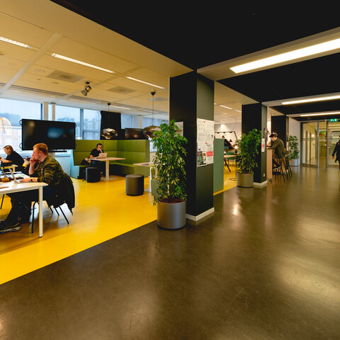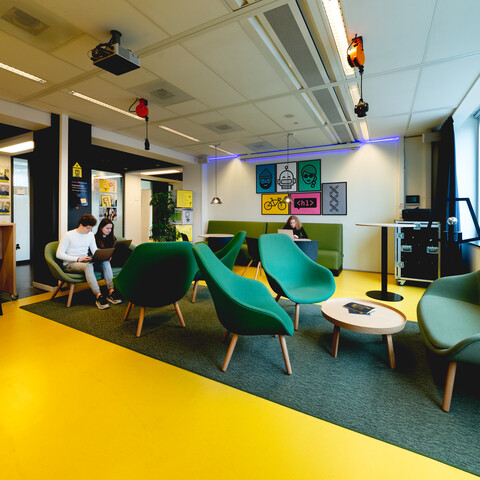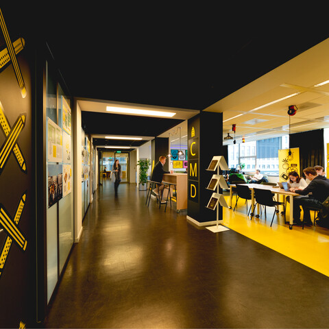 The department is happy with the result. Not only are the visual aspects a good match for CMD and its house style, but also the layout with different zones is in line with our vision. In addition, the quick changeover of the layout for an event proves to be a piece of cake. Claartje: “When I was there to take photos, every zone was charged with the atmosphere I had in mind. It's great to see these different functions alongside one another in a single open space.”