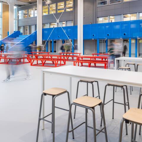 Client Alain Laaper: 'You see both students and teachers making optimal use of the building, the rooms and the furniture. It was a comprehensive and intense project. It is a pleasure to work with a partner like Gispen. The lines of communication are short and they have the ability to respond very quickly and adequately to get everything done as agreed upon and within schedule. That wasn't easy, because Gispen had to deal with delivery problems and raw material shortages due to the pandemic. It was fantastic to see how they pulled out all the stops and assembled the chairs and tables on-site. On the first day of school everyone was able to sit on proper chairs at beautiful tables, in an inspiring learning environment.'