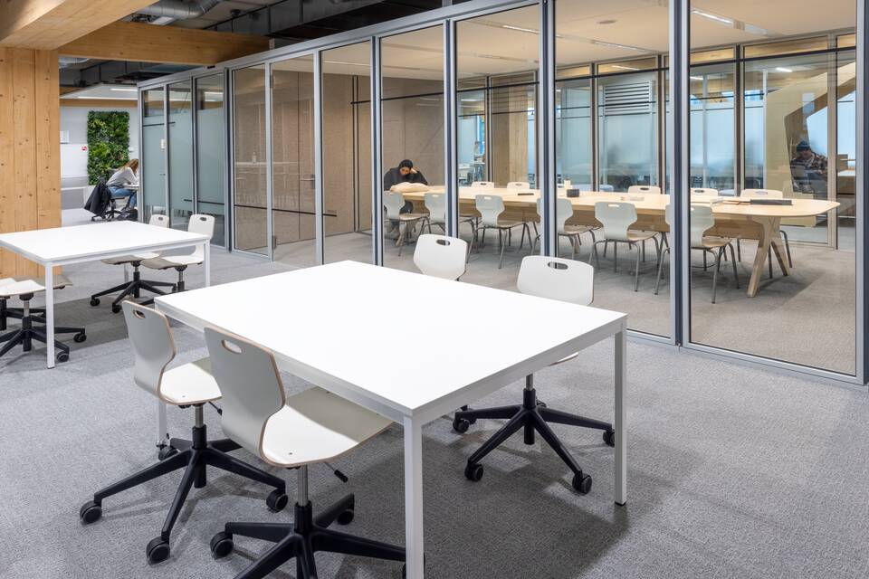 Gispen also fulfilled the college's wish for flexibility; all the separate pieces of furniture had to be easy to move around. To ensure that we could meet all the requirements, a trial setup with different furniture was placed at the college. The choice ultimately fell on Gispen computer tables and mobile computer chairs with wooden shells, NOMI chairs and IC tables.