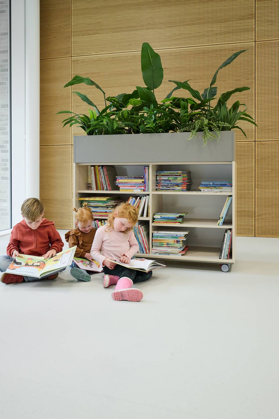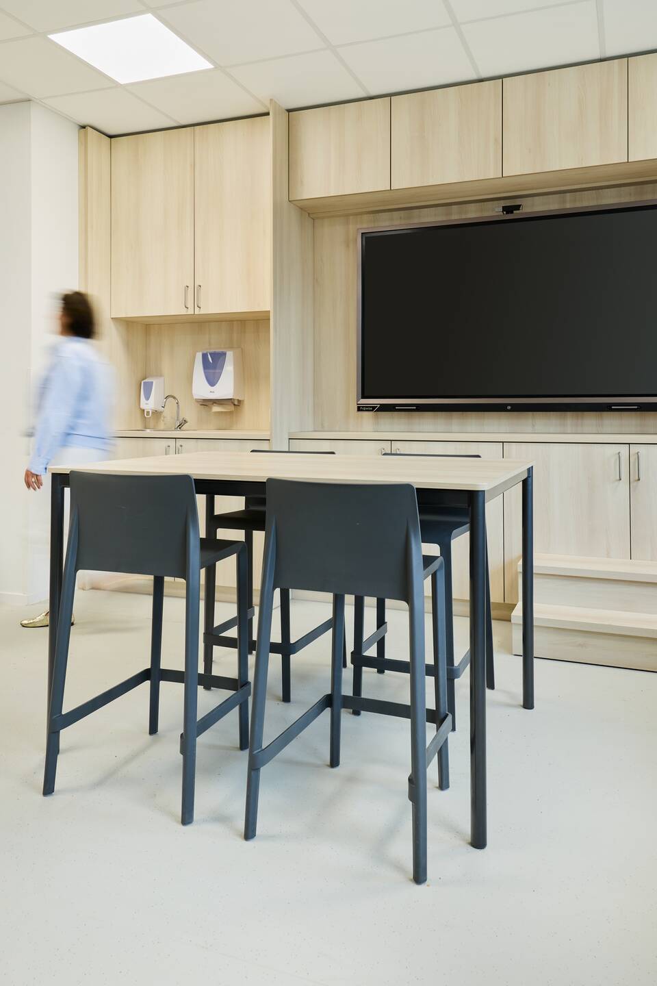 “We’ve applied the same color schemes across the whole school, yet each classroom still has its own identity. I’d describe the base style as Scandinavian — calm tones, light grey floors, with occasional accents like moss green or warm terracotta. We consistently referred back to the architect’s color palette.”