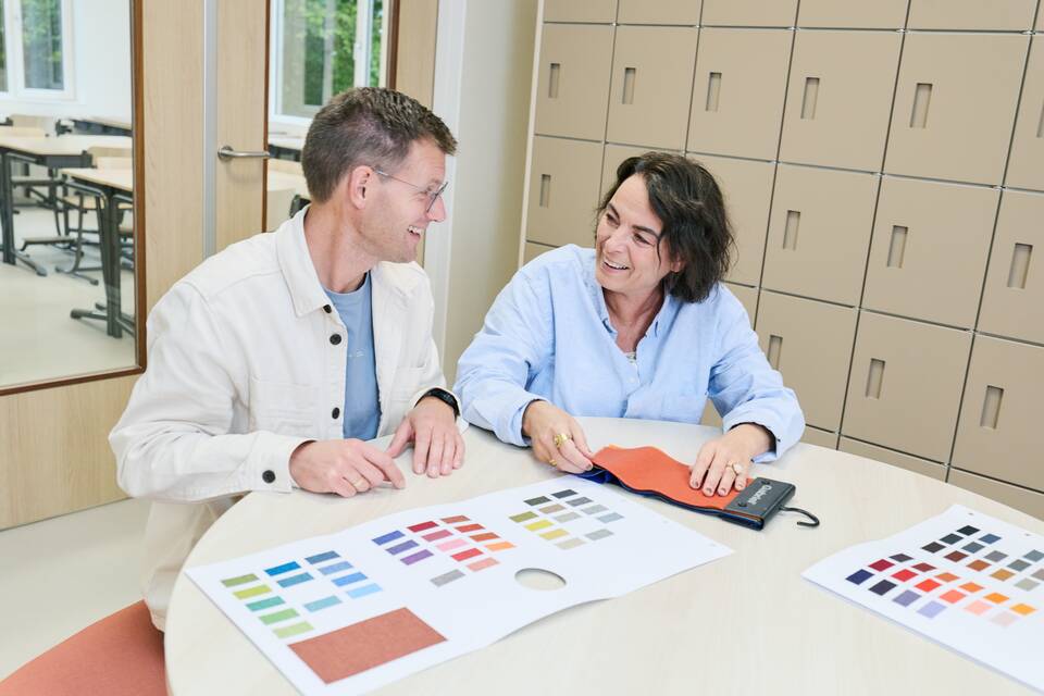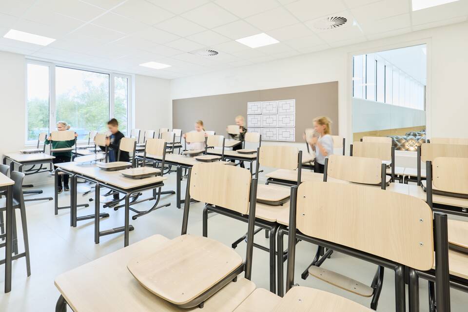 Corneel: “Everyone thinks it’s turned out beautifully. I’m as proud as a peacock!” He jokes: “I even sense a bit of envy from fellow principals. The central hall is used exactly as I hoped. Each classroom now has a large bulletin board displaying students’ creative expressions — no more loose drawings and papers scattered around the room. I like to keep our beautiful new spaces calm and tidy. The after-school care and the church also use our facilities. And for events like a suppliers’ breakfast, people know exactly where to find our school — a clear sign that they enjoy being here!”