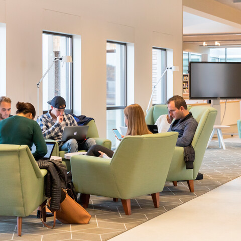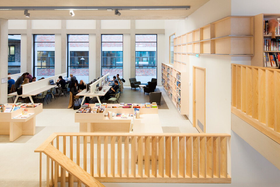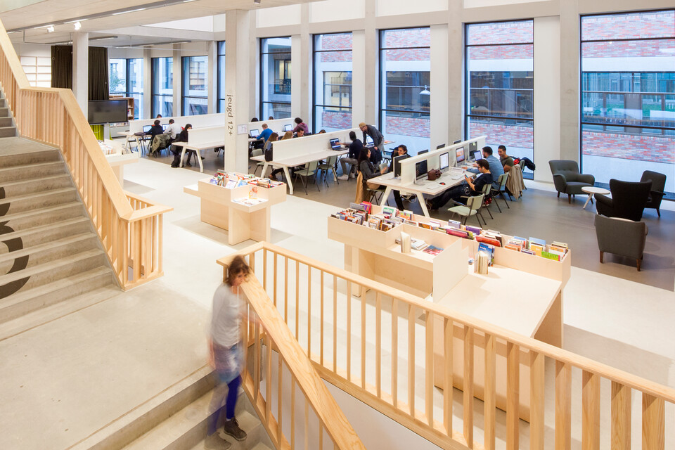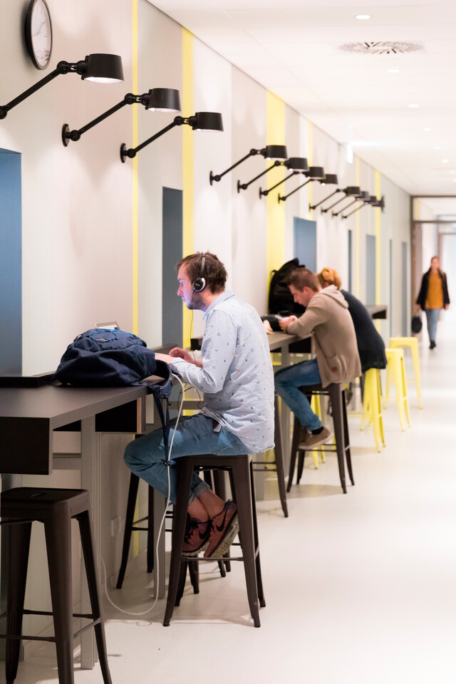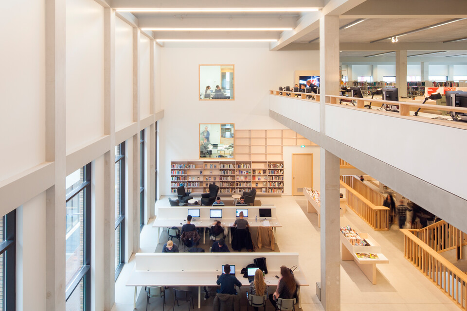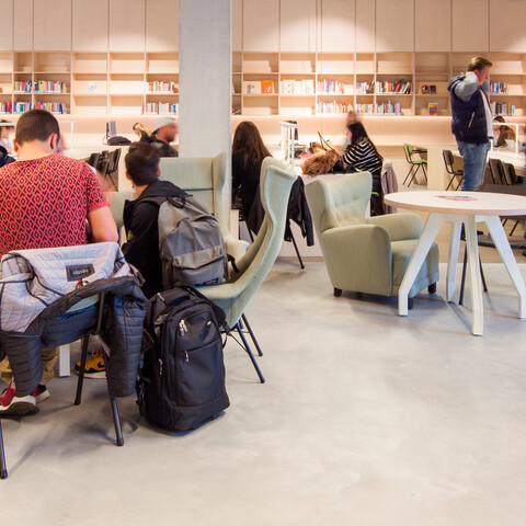 The library is a story of its own. The Zuyd library and the city library (De Domijnen) have been integrated into one. There are reading tables and quiet work zones to be found in the midst of all the books and magazines. Gispen was not only asked to supply the furniture and lighting, it was also given the task to design custom bookshelves.