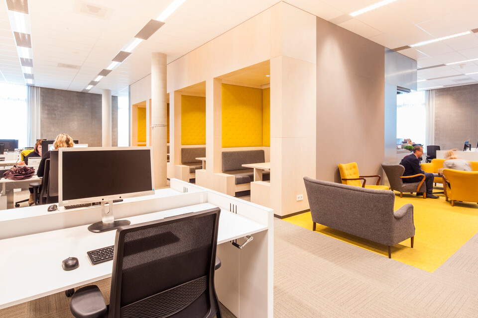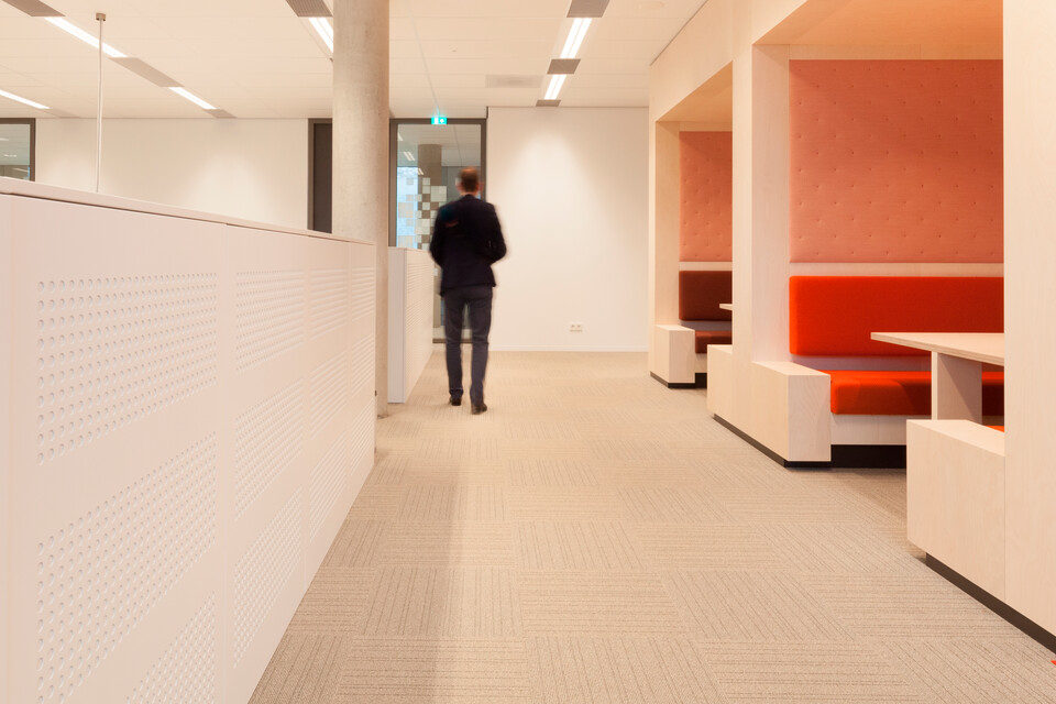 The public areas offer a great many places where people can meet, and can also be considered the beating heart of the campus. These areas can be recognised instantly due to the contrasting floor- and wall finishes. By applying second-hand furniture in a circular way, we created a homely and vintage atmosphere. Mieke Hogenboom, Business Manager at Gispen: ‘The interior design consists partly of reused furniture from FabriekNL, which we had reupholstered in the architect’s colour schemes. An exciting adventure that really suits this day and age and which is fully in line with the ambitions of Zuyd University of Applied Sciences and the architects.’