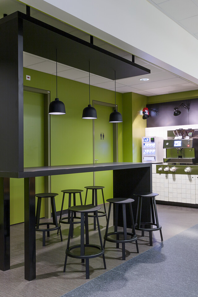 It was clear that the architect’s design concept included three different zones with different atmospheres: an active zone where visitors can work, talk or drink coffee, a relax-zone where one can unqwind and read a little and a quiet zone for those who need some peace and quiet. Gispen furnished the zones in a matching style to that of the architect’s vision. The colour scheme includes warm and natural colours: many shades of brown, green and beige. The furniture is characterised by its friendly and round shapes. Casala armchairs provide the desired comfort. The high-quality Havee sofas can handle the large flow of visitors. The lighting matches the atmosphere of the three zones.
