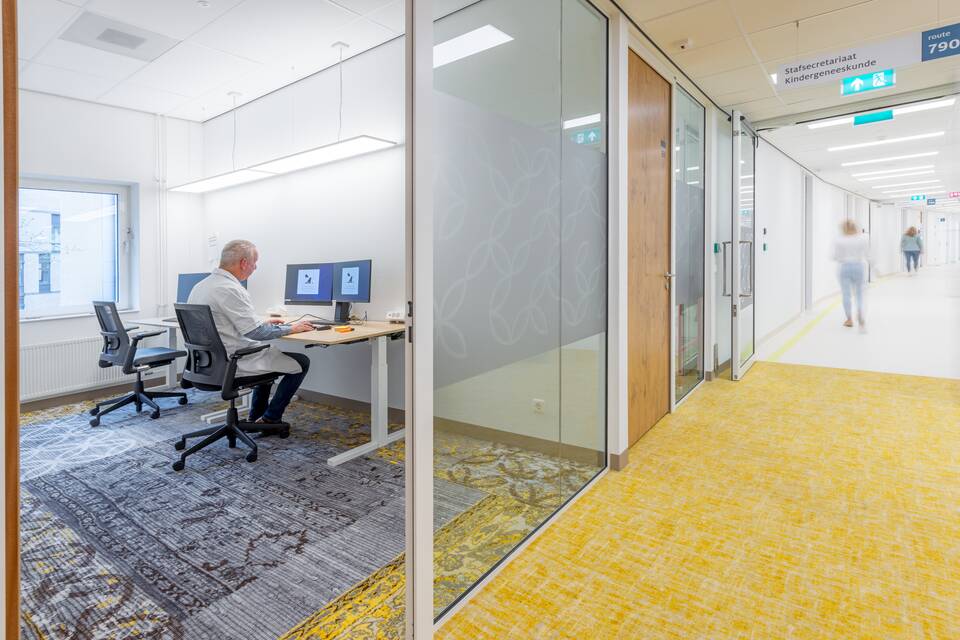 A trusted Gispen team got into action for Radboudumc Amalia Children's Hospital. The same trinity that was also involved in furnishing the new main building: Account manager Sabine Gorter, interior architect Nelleke Lagerwerf and project leader Ed Wulterkens. Nelleke: “A hospital is a 24-hour business that's always running. In order to truly unburden the client, you must all be on the same page.” Nelleke designed all the new rooms with appropriate products, which she based on the interior design concept by Suzanne Holtz Studio. The kick-off was an occupational health and safety check. “I often consulted with the head of department, always asking: 'what do you need' in order to work effeciently? Applying both to the outpatient clinics and the office areas. Making it possible for me to fine-tune things if necessary. In the number of sit-stand workstations, for example, or in creating more quietness within the open work areas as well as the treatment rooms by carefully considering who sits where, how you'd like to approach the children, and so on.”