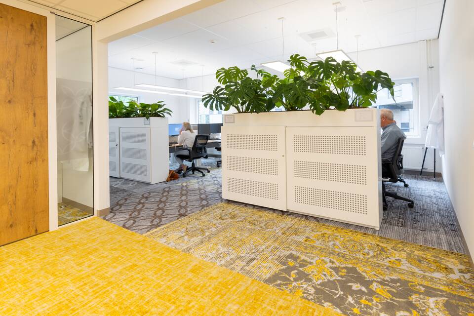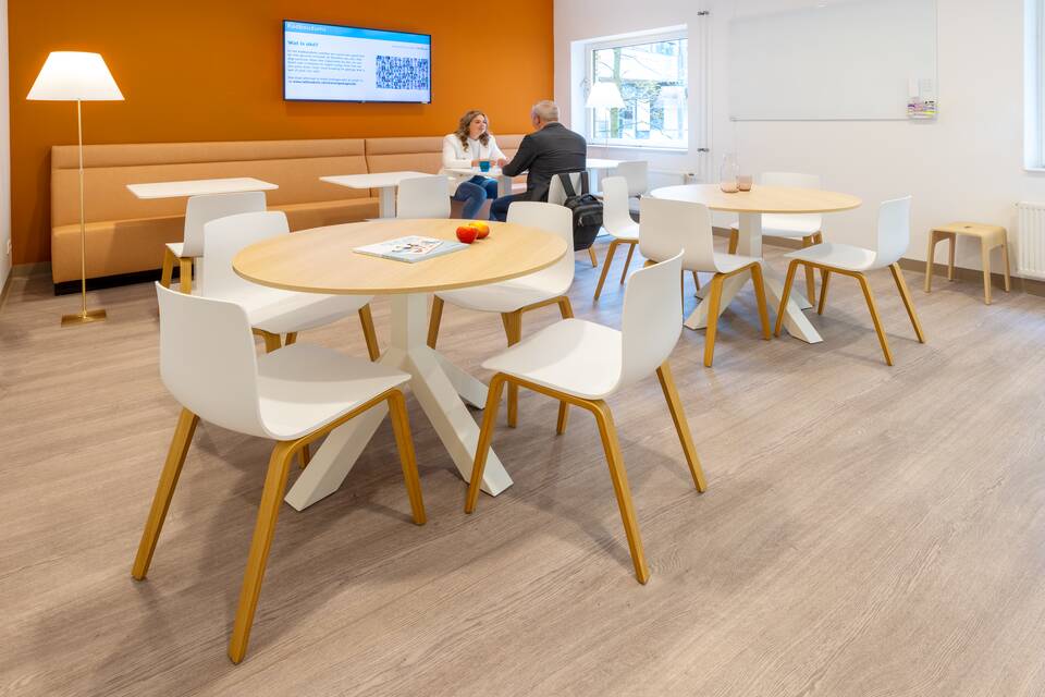 The workstations consist of desks from the Gispen TMNL range and ZINN office chairs with light-grey frames, giving them a less corporate look. In addition, Gispen took stock of which existing office chairs could be reused, which were then cleaned and reupholstered.