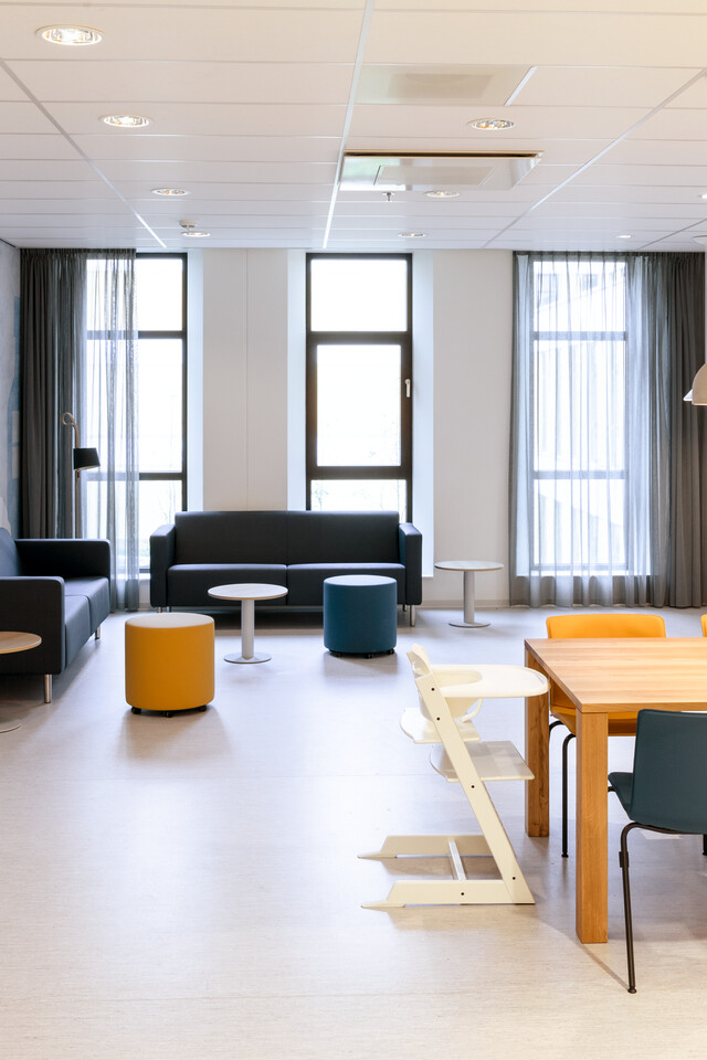 Peter: “Amphia specifically asked for extra comfortable patient chairs to be installed in the patient rooms. Getting out of bed as quickly as possible and getting in motion will contribute to a patient’s recovery. Chairs from Prominent and Moments now assist them in doing so.” The consulting rooms are furnished with the TM Doc: an organically shaped table which makes it easier for the doctor and patient to come up with a treatment plan together, with additional 4-legged Zinn visitors’ chairs. At the office areas, physicians and other employees make use of incredibly comfortable Zinn office chairs – Gispen supplied 1,000 of these. The central reception area is furnished with round Gispen TEAM tables and Nomi chairs as well as Casala Corals waiting area seats: a modular piece of furniture, used slightly differently every time it is installed. The variety of furniture allows visitors to choose a seat that suits them best. A Havee coach seat, a chair at the reading table or one of the bucket seats (Casala Onyx Traverse), for example. Moreover, various rooms are provided with children's furniture, such as Gispen Bronto chairs in different colours and plastic puppies from Magis. Gispen also supplied various medical-ergonomic products, of course, such as saddle stools from Medisit.