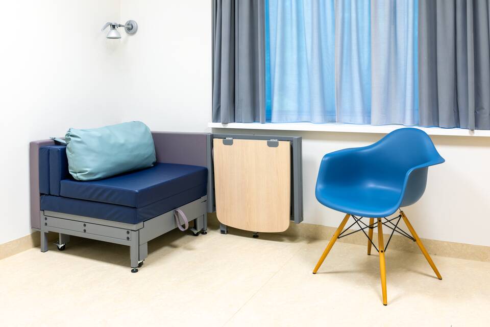 Sabine: 'Gispen designed the Sleepover so that family members can stay with the patient both during the day and at night. After all, the presence of a family member will contribute to a patient's recovery. Rijnstate first took the furniture concept for a trial run. It then turned out that they needed a smaller item because of the dimensions of the new rooms. The requirement is that a doctor has enough space around the bed to be able to act promptly in case of an emergency. We made adjustments to the item and added a folding table. The changes we made for Rijnstate can now also be used for other clients. The Sleepover has been a wonderful team effort.'