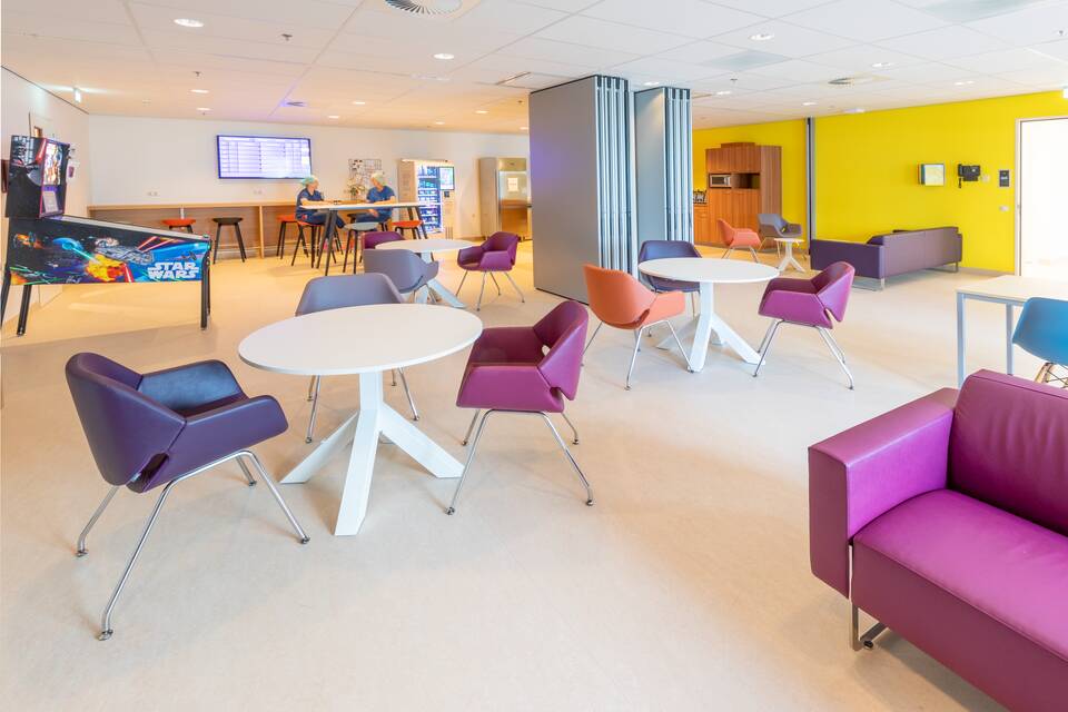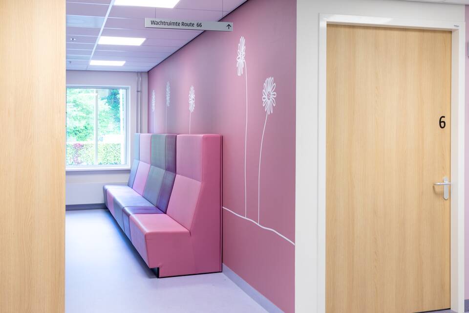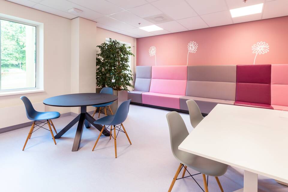 The centre is engulfed in shades of purple and green, which are a reference to the moorland colours of the Posbank, a nature reserve near Arnhem. Sabine Gorter, Account Manager at Gispen: 'Rijnstate had already worked out the design in detail. Dimensions, floors, colours - everything was laid out in a manual that was drawn up in close consultation with the users. Rijnstate was already aware of our products and how they can be used because of previous projects we had worked on together. The MultiLounge is a good example, which is widely used at Rijnstate and is once again applied to this project. This is a modular sofa system by Gispen which comes in a wide range of colours. Some products, such as the medical chairs, could be carried over from the previous department. In choosing new furniture, Rijnstate deliberately opted for products that contain easily separable components. This allows us to easily change or replace these components when needed, giving them a new lease of life.'