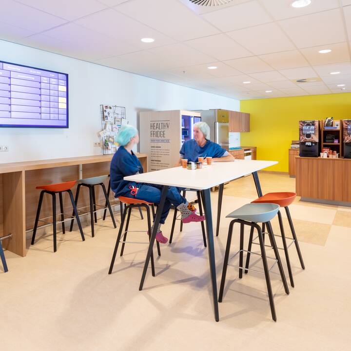 It is through various renovations and new construction activities that Rijnstate is working hard to continue to provide the best care in the future. Architect Gortemaker Algra Feenstra (GAF) helped create a reactivating Rijnstate: how can the hospital be designed in such a way that it invites patients to work on their recovery during their stay? An entire storey was built on top of the Centre for Women & Children with this same philosophy in mind, where the departments of Geriatrics and Oncology are now located. Other departments will get the same treatment in the future. Architect Femke Feenstra: 'GAF has conducted research into how the spatial environment of a hospital can contribute to activating its patients. The answer is a hospital where the actual hospital bed becomes less important but where the corridors become part of the living environment, which is mostly used by nurses and is filled with carts. We were looking for a fresh, new and active approach and Gispen had matching ideas. We are currently exploring how our interior and furniture can contribute to activating patients even more.'