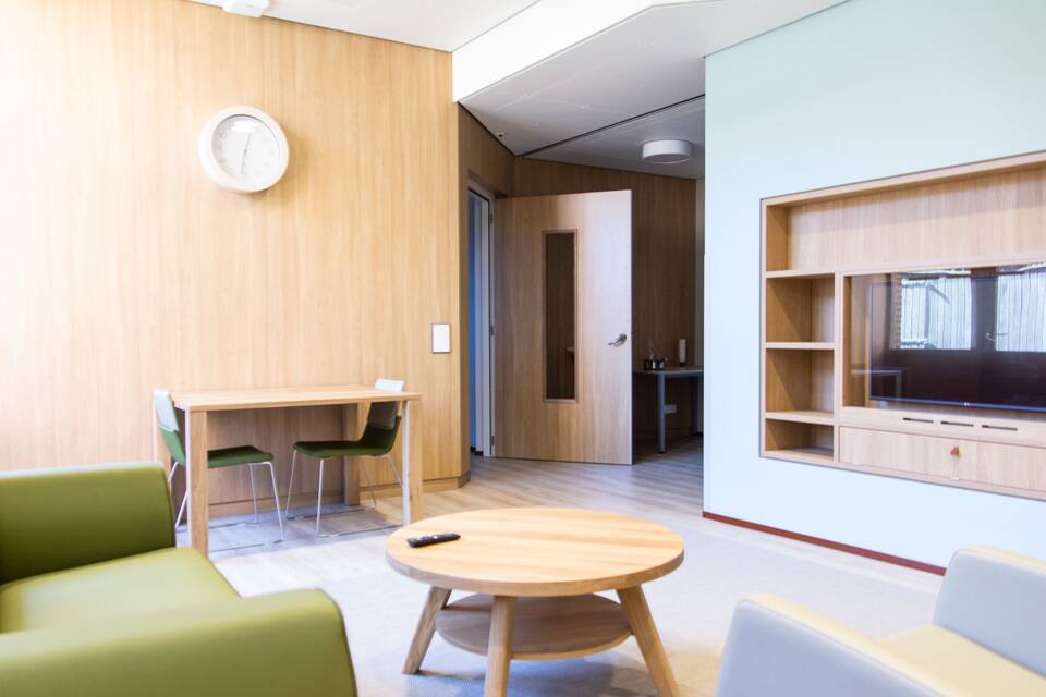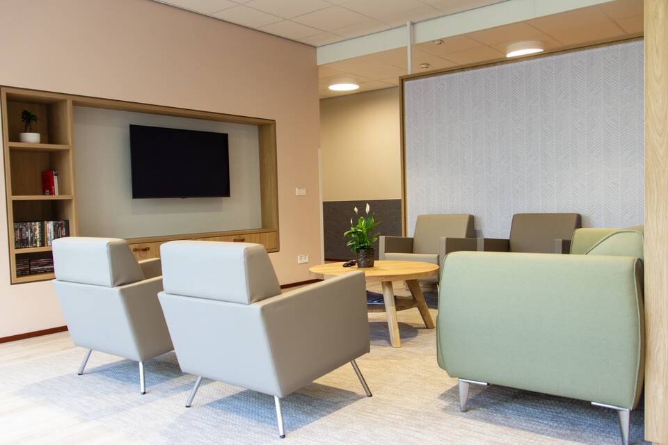 Bureau Bas designed the new layout of the department and presented a detailed plan for the required furniture and colour schemes. Gispen supplied the furniture for the reception area with reception desk, two living rooms, two comfort rooms and an IC unit. Sabine van den Berg, Gispen account manager: "The separate furniture items that we supplied had to meet specific requirements in order to be suitable for use within a closed psychiatric ward. The furniture had to be sturdy and not have any sharp edges, for example. At the same time, we wanted to give the living rooms and comfort rooms a homely atmosphere. Jasper adds: "Other important requirements included hygiene and infection prevention. The furniture had to be easy to clean and could not contain any felt."