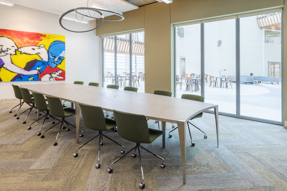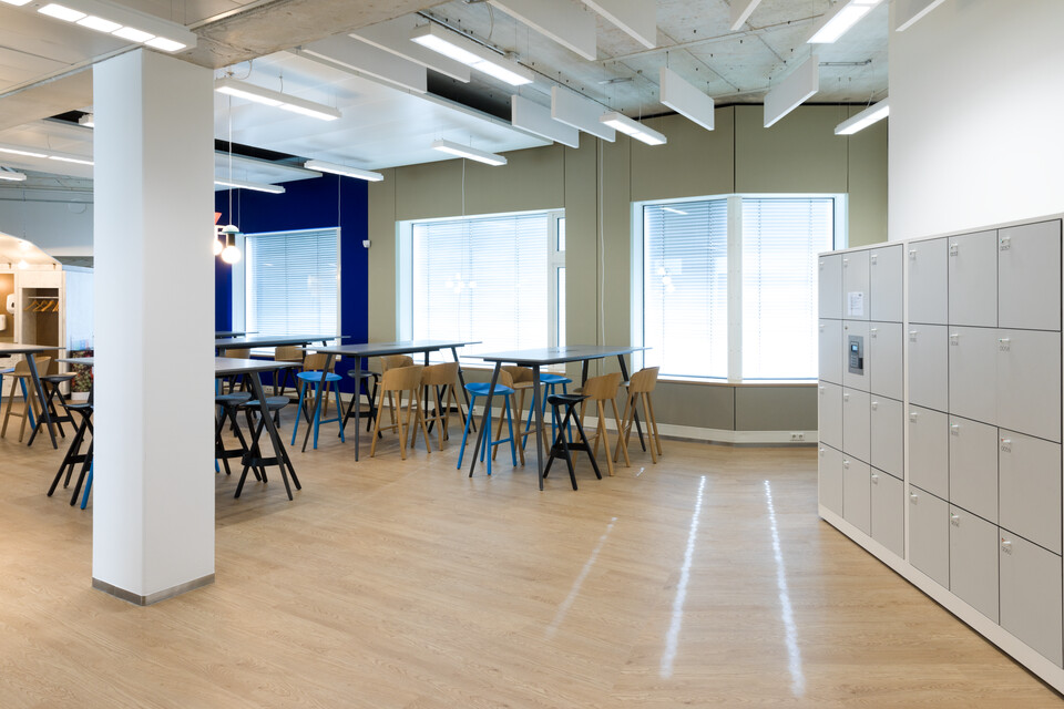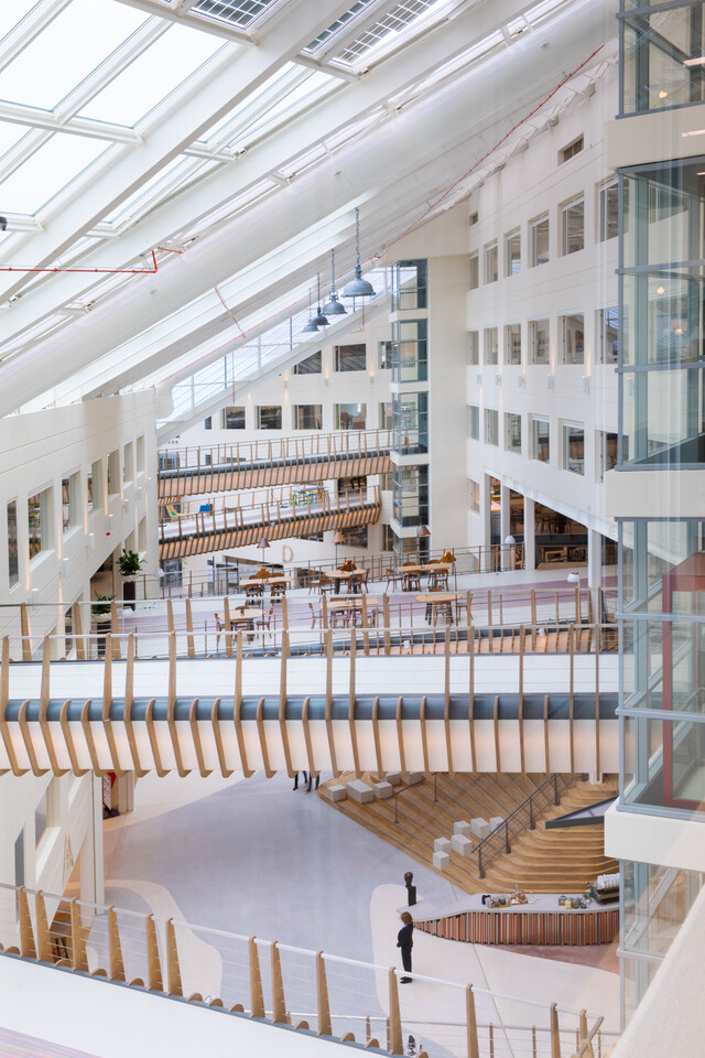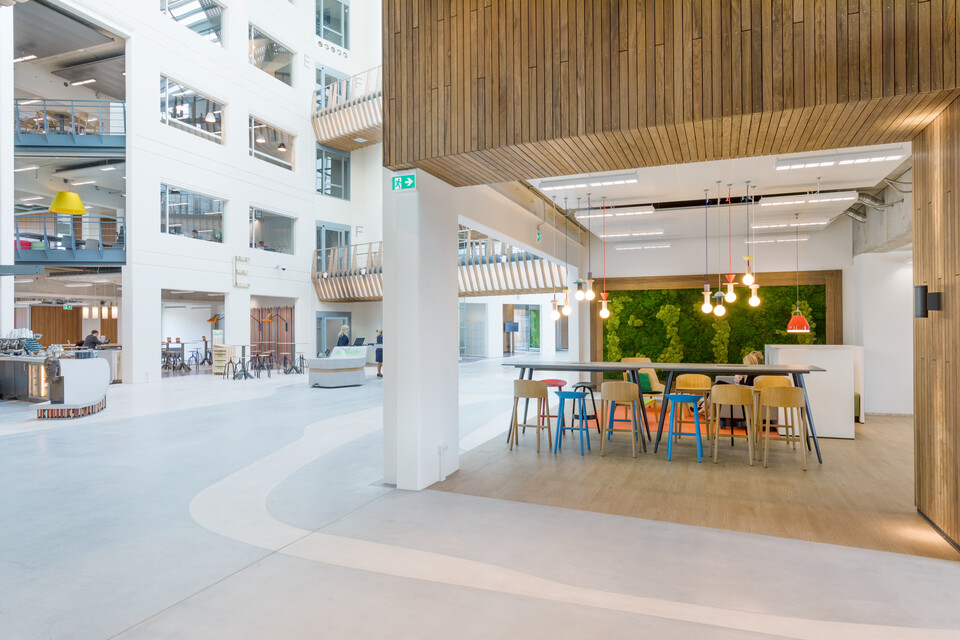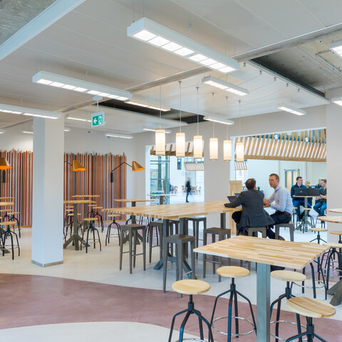 The Atrium is where employees and visitors enter the building, a large open area that encourages people to get together. Besides the Atrium, there are three different types of work areas to be found, each with its own distinctive atmosphere. The Studio brings people together, a dynamic work environment with an abundance of light and colour, with the look of a modern, creative mansion. At the Office, employees can work individually or work together in the more standardised, flexible office area. And last but not least there is the Library, a place of serenity with a Harvard-like atmosphere. Gispen furnished all these areas and the various restaurants as well. Firstly there is ‘Praet’ near the entrance, where you briefly stop by for a healthy snack. Then secondly there is restaurant ‘Spijs’ on the second floor, where small groups of people can have a bite to eat together or relax a bit. And finally we have restaurant ‘Proef’ including a roof terrace on the fourth floor, where entire teams and large groups of people (also suitable for training courses) can get together. You can simply choose a spot that matches the purpose of your visit.
