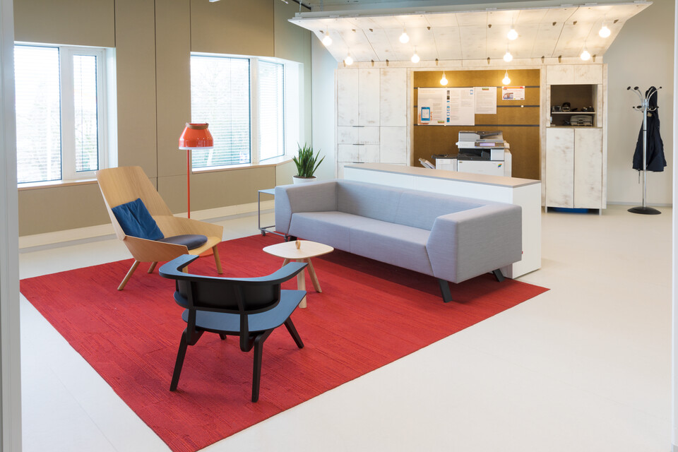 Rob Lotstra, interior architect at Gispen: ‘Each furniture brand, type of furniture and manufacturer was measured against the circular ladder (the Design Framework) in order to determine whether they met the circular agreements that Gispen and Alliander established together. Reusability was an important requirement. At the same time, this was not to be visual as such; the building had to look brand-new.’ Gispen revitalised the old four-legged desks with new Ecoboard tabletops. The old tops now form dividing screens, upholstered in an Ecolabel cover. We transformed old filing cabinets into lockers. The reused furniture was supplemented with new and, of course, circular products such as the Triennial and Nomi chair from Gispen, as well as the Dukdalf and Sett sofa. ‘We also applied products from the MultiLounge programme. We installed modular bench elements in cubbyholes that were constructed by the interior construction contractor. This solution prevented Alliander from having to come up with a tailored seating solution.’