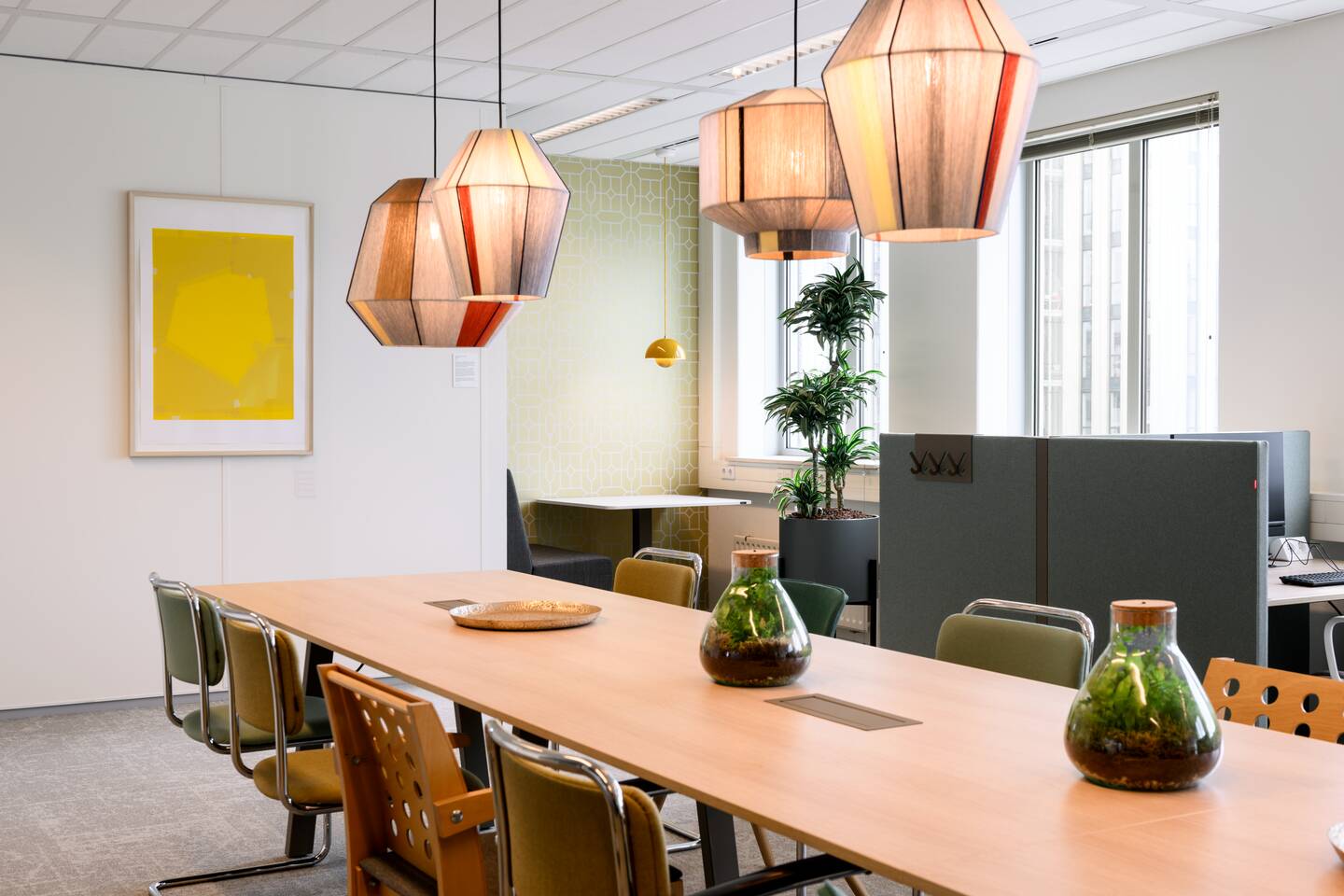 Rob Lotstra, interior architect at Gispen: ‘I started designing from the existing structures: reusing walls, ceilings, lighting and carpet. I used the carpet to create new colour schemes for the three floors, in which the original and somewhat loud colours were changed to softer colours for a more homely atmosphere. I also created a floor plan for each floor with a blend of meeting spaces and workstations, ranging from quiet to more lively.' Floor 7 contains an important entrée: the living room. This is where visitors are welcomed, get served delicious coffee and receive instructions on the available spaces. This also serves as a meeting point as well as a place to touch base in a homely atmosphere with lots of wood and greenery. From fresh coffee and tea to toiletries; no detail has been spared. Floors 6 and 8 contain a wide variety of conference rooms – both in terms of size and style – as well as spaces for concentrating or collaborating. The furniture in the creative conference rooms can easily be moved around by the users themselves.