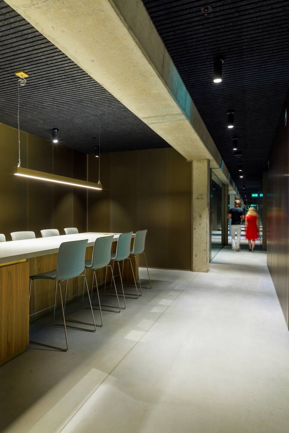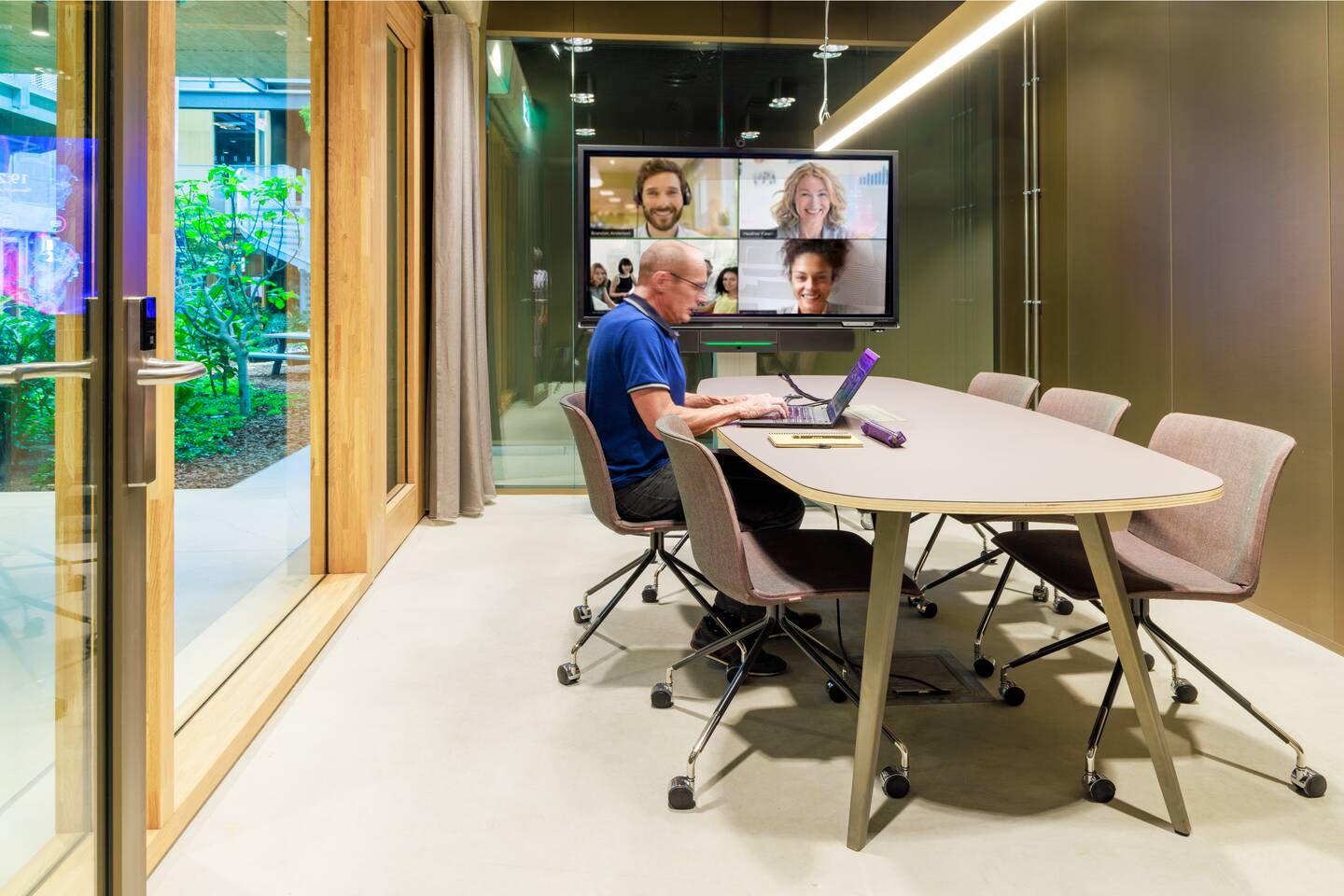 Bas: ‘Toen circa acht weken voor levering bleek dat de verbouwing van het pand vertraging opliep, was er een slimme oplossing nodig want alles was al volop in productie. In overleg hebben we besloten de productie door te laten gaan en meubilair in externe opslag te zetten bij een partner van zowel Gispen als ITC: Convoi. Zij hebben vervolgens in batches uitgeleverd.’ Jeroen: ‘Ook op andere punten kwam Gispen met goede ideeën. Zo had de architect bijvoorbeeld voor vergadertafels Forbo Linoleum Desktop bladen voorgesteld voor een wat zachtere uitstraling. Gispen stelde een meer voordelige oplossing voor met dezelfde uitstraling: bladen van spaanplaat met kantenband afwerking in multiplex look.’
