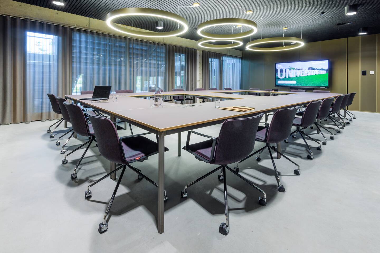 Het nieuwe faculteitspand heeft een ruwe, industriële uitstraling met veel onbewerkte, natuurlijke materialen zoals eikenhout, beton en metaal. Doelstelling voor het meubilair was om juist hiermee kleur aan te brengen en voor een warme, knusse sfeer te zorgen. Een ‘home away from home’ voor de studenten uit het buitenland. Een plek waar zij graag komen en interactie zoeken met elkaar. Naast meer traditioneel ingerichte onderwijsruimtes biedt de faculteit ruimte aan open studielandschappen met een innovatievere uitstraling, laboratoria en kantoren, en er zijn meerdere groene binnentuinen. Ook voor het meer traditionele studielandschap was de eis dat de ruimtes efficiënt te gebruiken zijn: dus multifunctioneel qua meubilair en inrichting.