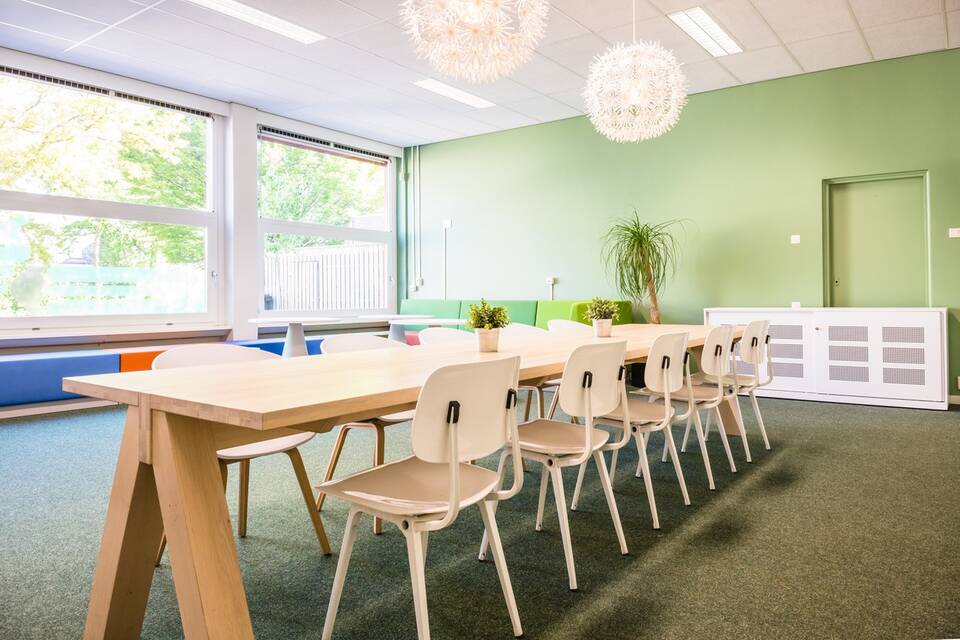 De uitdaging om de schoolinrichtingsgrenzen te verleggen was groot. Alle ruimtes – van entree en pantry’s tot werk- en teamruimtes – moesten compleet vernieuwd en op elkaar afgestemd worden. We hebben een totaal inrichtingsconcept gecreëerd voor alle ruimtes.  Een concept dat even doordacht als toekomstbestendig genoemd mag worden.