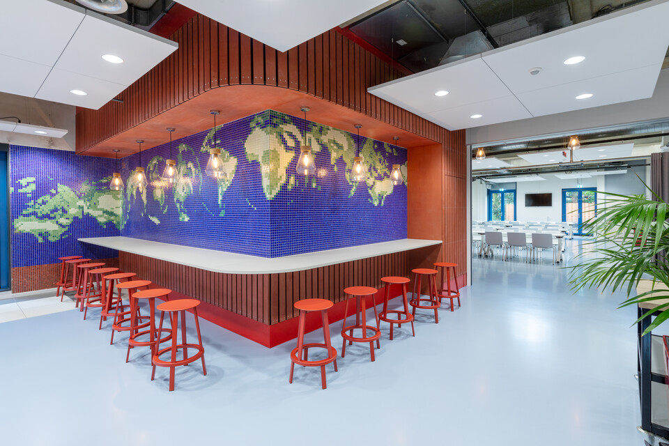 Monique: ‘Er zijn nog steeds mensen die hier voor het eerst binnenlopen. De reacties zijn elke keer weer enthousiast. Per dag komen er zo’n drie tot vijftien medewerkers binnen die het hele jaar in het veld werken en tussendoor één à twee dagen naar kantoor komen om te debriefen. Sommigen komen vanaf Schiphol rechtstreeks naar het hoofdkantoor. Uiteraard vinden zij hier goede koffie aan de balie, wasfaciliteiten, een rustige ruimte op de bovenverdieping met hangmatten en naast een fijne binnensfeer ook een mooie buitenruimte.’
