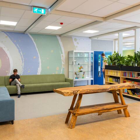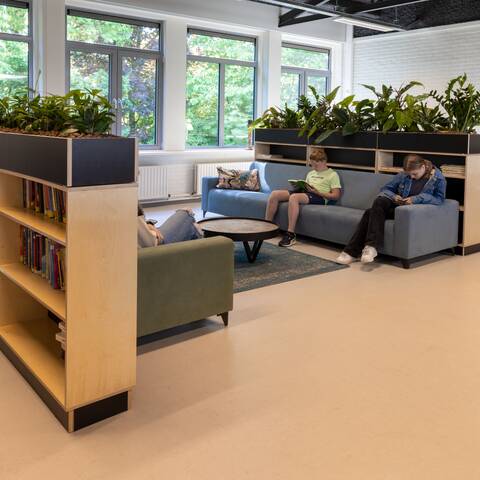 Paul: ‘Het eindresultaat is fantastisch, we zijn er hartstikke blij mee. De WerkLeerCentra vormen een afwisselend geheel dankzij de verschillende meubels die gekozen zijn. Dat geeft een heel leuk beeld. Daarnaast hebben we sfeer gecreëerd met vaste plantenbakken. Op een speelse manier zijn afscheidingen geplaatst, zodat elk groepje leerlingen een eigen plek heeft om gefocust samen te werken. Begin dit jaar hadden we Open Huis voor nieuwe leerlingen en kwamen ook oud-leerlingen kijken. We kregen zeer positieve reacties op het nieuwe interieur! Het Assink Lyceum is klaar voor Het Nieuwe Onderwijs.’
