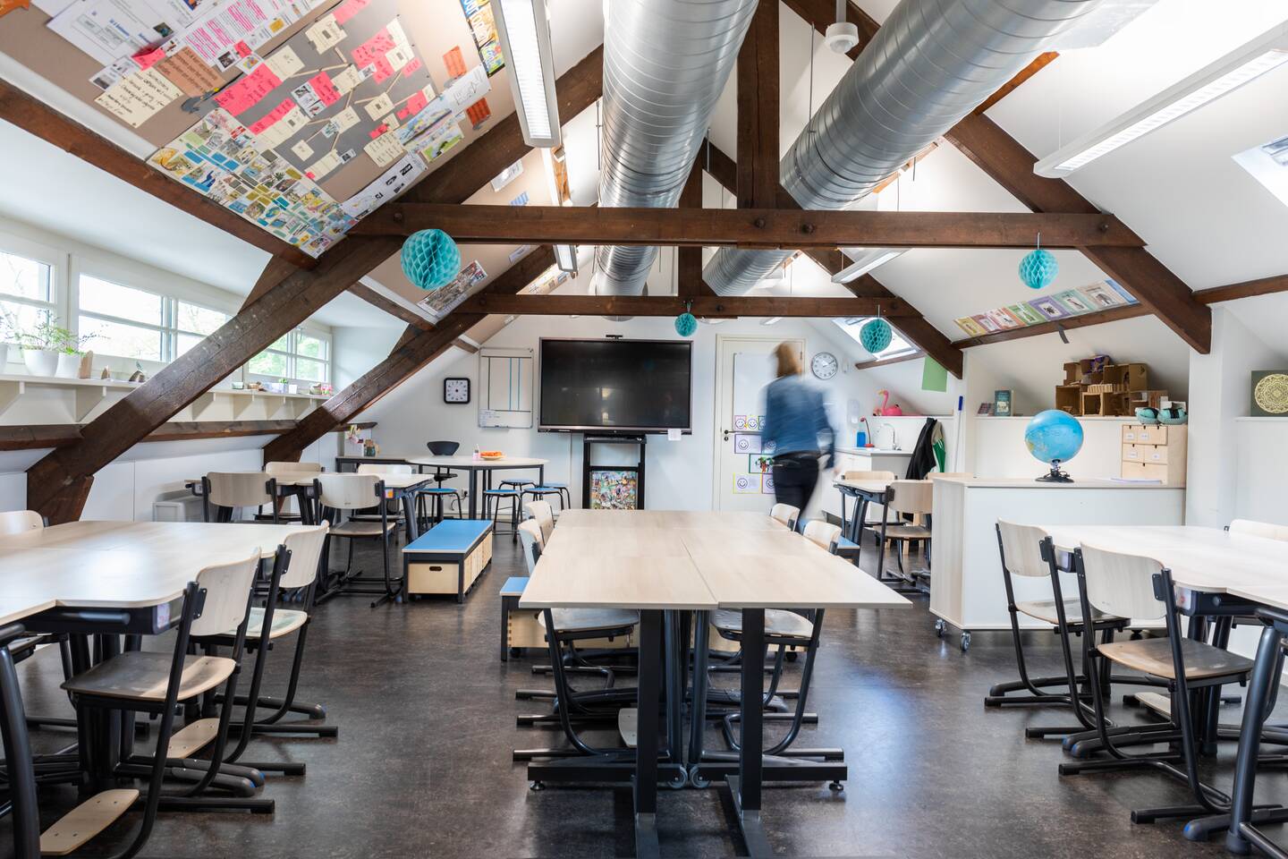 Voor de allerkleinste leerlingen is het hier elke dag een feest om les te krijgen. Dit lokaal is voorzien van een fantastische boom, verrijdbare kasten en een keukentje. Er is zelfs een groot vogelhuis waarin de kleuters kunnen zitten. Daarnaast voelen ze zich aan de NEXXT leerlingsets helemaal op hun plek. Ze kunnen hier rustig en vertrouwt samen of zelfstandig werken. Het verrijdbare wandboard zorgt ervoor dat de ruimte verdeeld kan worden in aparte ruimtes. Ook verbetert het de akoestiek en kunnen er sommen op gemaakt worden, schrijfoefeningen opgedaan worden of prachtige tekeningen op gecreëerd worden. In de ‘Inline’ kastenwand kunnen alle lesmaterialen opgeborgen worden.