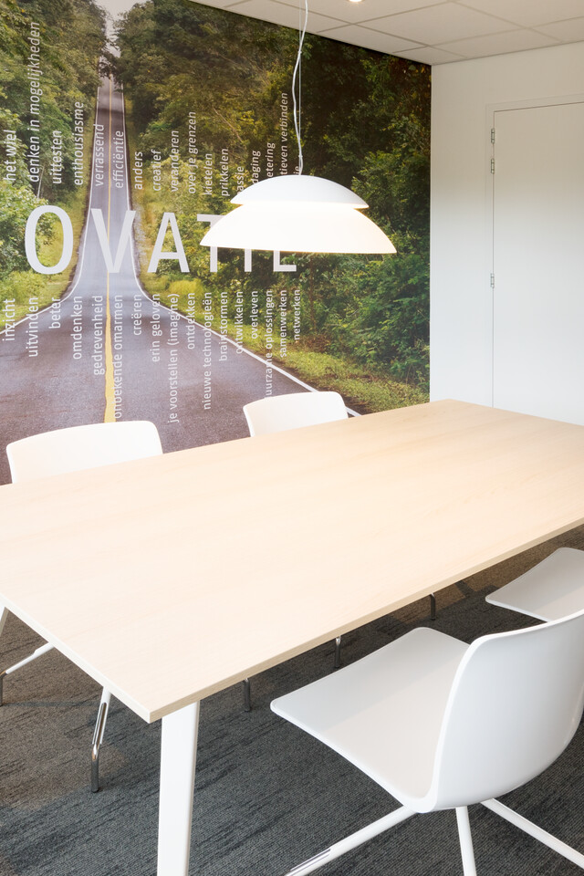 Matthijs Elsing, Accountmanager bij Gispen: ‘Beweging en flexibiliteit stimuleren – het was een opdracht naar ons hart. Samen met Human-Space hebben we de inrichting volledig gefinetuned op deze wens. We hebben verschillende opties gepresenteerd. Het KNGF koos onder meer voor zit/sta-duowerkplekken.’ Kenmerkend voor de tafels zijn de stabiliteit, het bedieningsgemak en de snelheid van verstelling. Elsing: ‘Zit/sta-tafels worden wel vaker toegepast, maar meestal op kleinere schaal. Het was de eerste keer dat een opdrachtgever deze oplossing bewust voor al haar medewerkers inzet.’ Zittend werken kan ergonomisch verantwoord in Gispen Zinn bureaustoelen. In een vergaderruimte staan stoelen van Casala met een bewegende rugleuningen in de vorm van een graat. Het toegepaste meubilair maakt bewegen vanzelfsprekend; de nieuwe indeling van de etage versterkt dit nog.